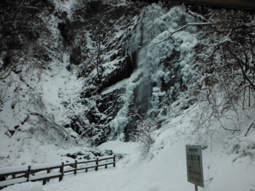 滝は、半分凍っていましたが、溶けかけた氷が時折音を立ててばりばり崩落するという、中々スリリングな状態でした。
